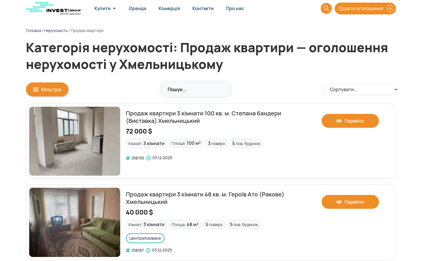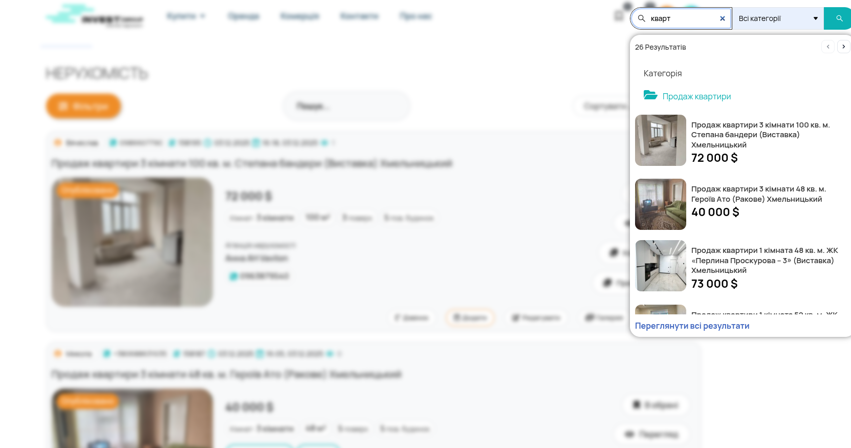 Розробити каталог із фільтрами за типом, площею, ціною, розташуванням і статусом, щоб користувачі могли швидко знайти потрібний об’єкт.